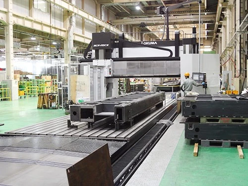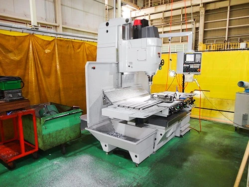 主な加工機械 機種 :門型マシニングセンター(五面加工機) 機種名 :MCR-A5CⅡ(35x120) メーカー:オオクマ製 仕様概要 有効門幅 :3650mm テーブルサイズ:12,000mm X 3,000mm 最大積載量 :65,000Kg 機種 :立型マシニングセンター 機種名 :MILLAC761VⅡ メーカー:オオクマ製 仕様概要 最大加工容積 :1,540mm X 760mm X 660mm テーブルサイズ:1,800mm X 720mm 機種 :NC旋盤 機種名 :LB3000EXⅡ メーカー:オオクマ製 仕様概要 最大加工径 :φ340(標準加工径255) 最大加工長さ:500mm 機種 :NCフライス 機種名 :YZ-500SG メーカー:山崎技研製 仕様概要 最大加工容積 :1,050mm X 550mm X 550mm テーブルサイズ:1,600mm X 500mm